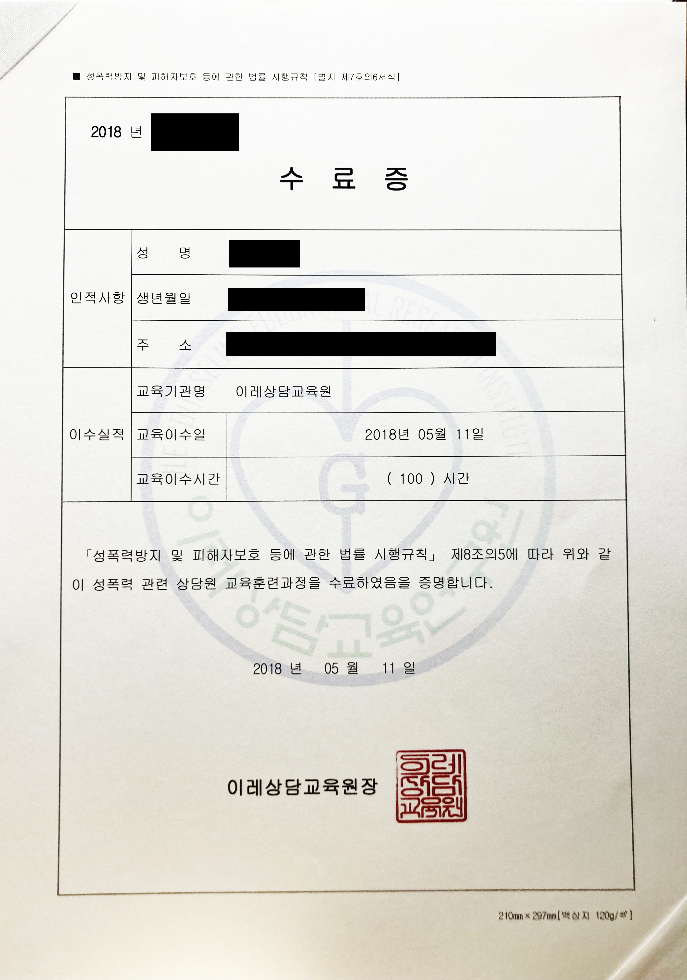 성폭력전문상담원 양성교육 수료★ 본문