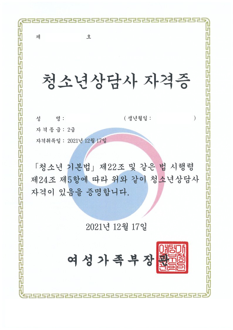 2021년 청소년상담사 2급 합격 및 자격증 취득★ 본문