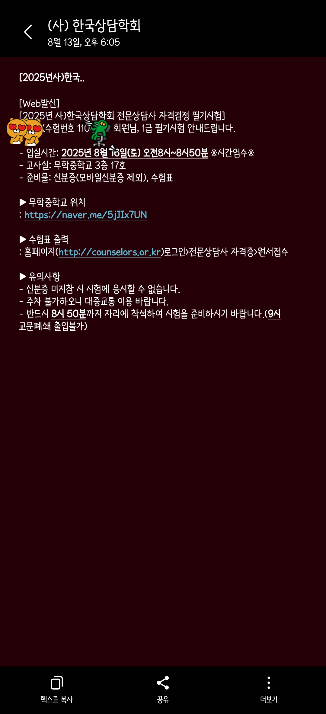 학회는 친절하다. 오전 8시부터 8시 50분 사이에 반드시 입실하라고 미리 안내 문자가 왔다. 전날 수험표와 신분증을 야무지게 챙겼다.
